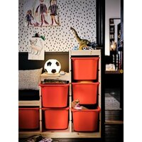 Стеллаж Труфаст лесенка с контейнерами предназначен для хранения игрушек, книг и зонирования пространства. Максимальная нагрузка на стеллаж составляет 5 кг, что позволяет хранить на нем различные предметы.