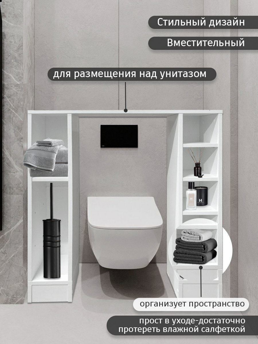 Стеллаж над унитазом — это идеальное хранение в ванной комнате. Тумба белая выполнена из ЛДСП белого цвета, что делает его не только прочным, но и легким в уходе.
