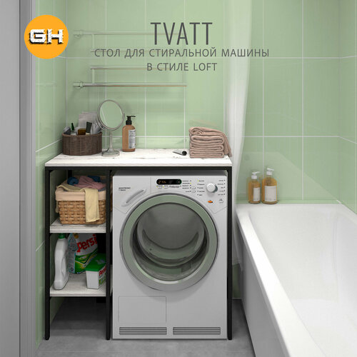 Универсальный стеллаж TVATT loft для стиральной машины - настоящий органайзер для всех ваших вещей и аксессуаров. Стильный и компактный, он идеально впишется в любую ванную комнату, придавая ей порядок и уют. Достоинство данного стеллажа в стиле лофт - удобное хранение различных предметов. Вы можете использовать его как тумбочку, на которой будут размещены косметика и принадлежности для ухода за собой. А благодаря высоким полкам на них смогут разместиться все вещи, необходимые для ежедневной жизни, декоративные корзинки, коллекция ароматических свечей, полотенец и даже есть место для массажной ванночки для ног или тазика. Используйте шкаф пенал, как полку для посуды, моющих средств или стойка для цветов, этот стеллаж органично впишется в интерьер вашей гостиной или кухни. Его модульный дизайн позволяет создавать оригинальные композиции из нескольких шкафчиков и полок нашего производства UNA LOFT и UNA LOFT mini. Прочная разборная конструкция и качественные материалы гарантируют надежность и долговечность этажерки. Каждая полка стеллажа может выдерживать нагрузку от 15 до 20 кг, что позволяет разместить на ней все необходимые предметы без беспокойства о прочности. Стеллаж металлический оснащен регулируемыми опорами на ножках, которые обеспечивают устойчивость и защищают пол от царапин и вмятин. Вы можете легко подстроить его под любую поверхность для оптимального использования пространства. Металлический каркас у органайзера с полками выполнен из профиля 20 х 20 мм, окрашен в черный матовый цвет и защищен от ржавчины и коррозии благодаря порошковому покрытию, устойчивому к влаге. Полки изготовлены из высококачественного ЛДСП толщиной 16 мм. Столешница изготовлена из высококачественного ЛДСП, специальное ламинированное покрытие делает ее ударопрочной и не царапающейся, а также защищает от влаги. Стеллаж модульный напольный изготовлен из цельносварного металлического каркаса, усилен двумя задними металлическими балками, что позволяет ему сохранять устойчивое положение. Поставляется стеллаж деревянный в 1 упаковке, конструкция разборная, легко собирается с помощью шуруповерта и болтов, крепления и подробная инструкция по сборке входят в комплектацию. Независимо от того, где вы решите разместить этот узкий стеллаж - он прекрасно сочетается с любыми интерьерами благодаря своему стильному и элегантному дизайну. Товар продается напрямую от производителя, что гарантирует качество и выгодную цену.
