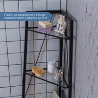 Металлическая мебель из коллекции Camelot идеально впишется в современный интерьер ванной комнаты. Стильный и практичный стеллаж с полками из закаленного стекла можно использовать как для хранения полотенец, косметических и гигиенических средств, так и для размещения элементов декора. Не привлекает к себе излишнее внимание, выглядит легким, поэтому визуально не загромождает пространство.