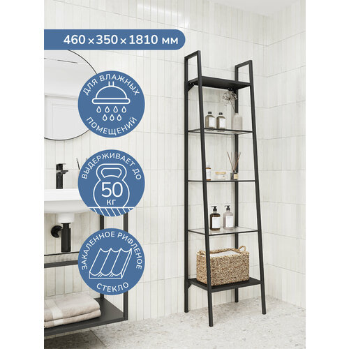 Стеллаж имеет размеры 46х35х181 см, что позволяет разместить на нем большое количество предметов. Благодаря открытой конструкции, вы сможете легко организовать хранение различных вещей, от ванных принадлежностей до элементов декора и живых цветов.