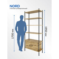 Купить Стеллаж с ящиком напольный, стеллаж для гардероба, универсальный, система хранения Ulitka Nord 85х35х195 см, металл/ЛДСП с доставкой по всей России.