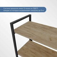 Материал полок - ЛДСП, что обеспечивает прочность и долговечность стеллажа. Металлический корпус придает ему дополнительную устойчивость и надежность.