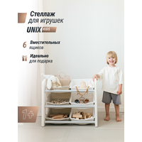 Купить Стеллаж UNIX Kids для хранения игрушек напольный, пластиковый, 6 ящиков, 73х30х63 см, серый, белый с доставкой по всей России.
