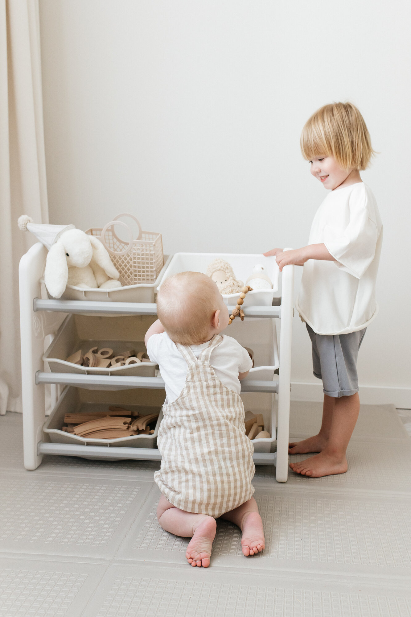 Стеллаж UNIX Kids для хранения игрушек напольный, пластиковый, 6 ящиков, 73х30х63 см, серый, белый: сравнение цен, характеристики, фото, актуальное наличие и цены.