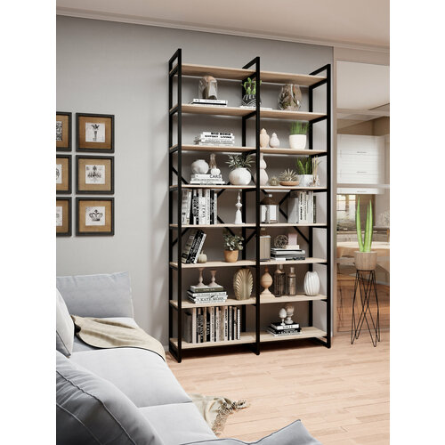 Стеллаж в стиле лофт BRUNO DOUBLE 8 полок (240х134х34см) Дуб Сонома: сравнение цен, характеристики, фото, актуальное наличие и цены.