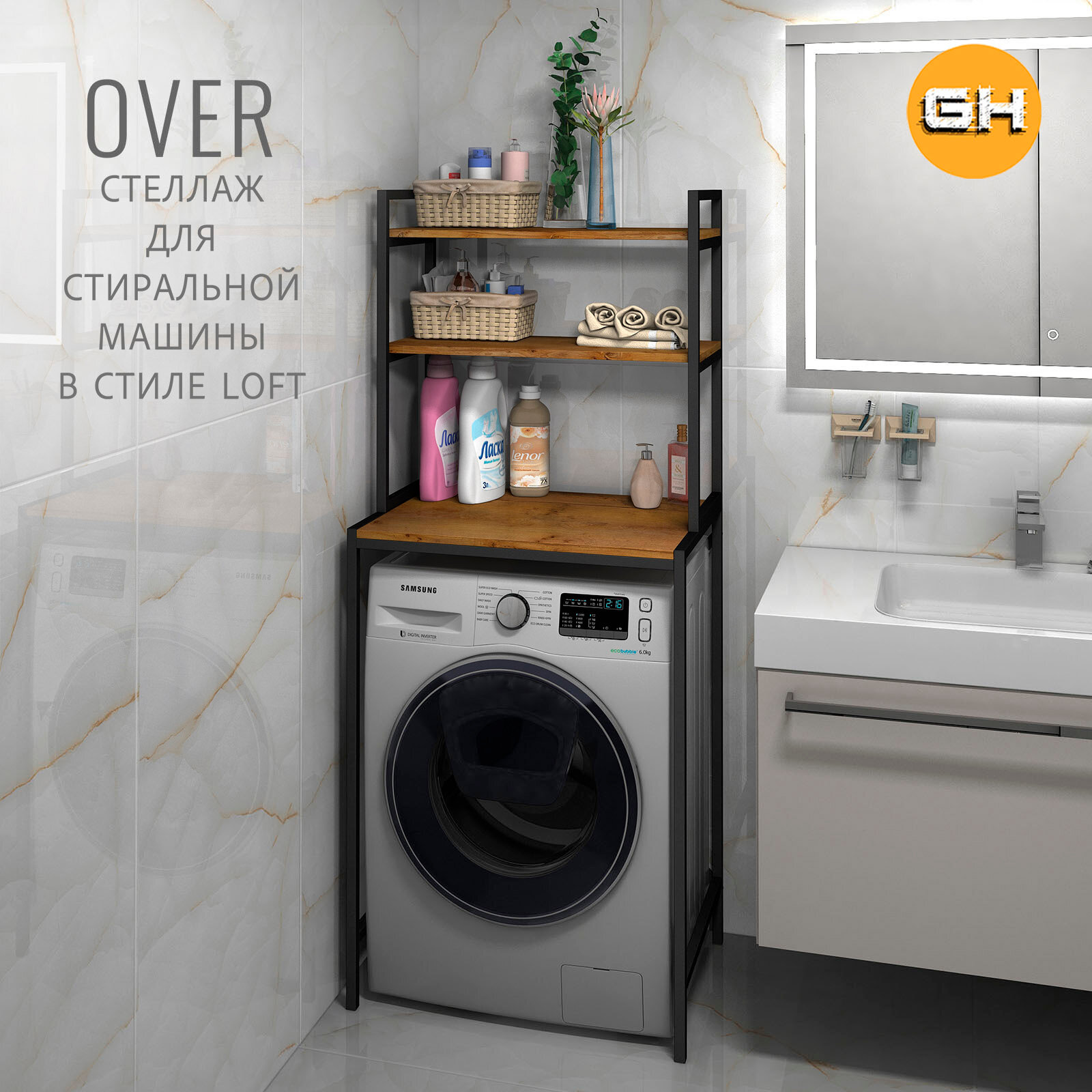 Купить Стеллаж в ванную OVER loft, коричневый, этажерка для стиральной машины, шкаф для ванной комнаты, 66х45х160 см, гростат с доставкой по всей России.