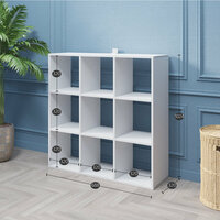 Стеллаж Velardy кубикус оснащен девятью полками, максимальная нагрузка на каждую из которых составляет 15 кг. Это позволяет хранить на нем различные предметы, включая книги, детские игрушки, мебельную утварь и цветы.
