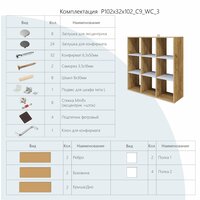 Выполнен стеллаж из ламинированного ДСП 16мм, кромка обработана на высокоточных станках с использованием качественных материалов из Германии и Австрии.