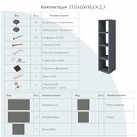 Выполнен стеллаж из ламинированного ДСП 16мм, кромка обработана на высокоточных станках с использованием качественных материалов из Германии и Австрии.