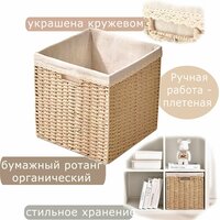 Купить Стеллажная корзина с кружевом / коробка для хранения вещей как икеа тьиллевипс TJILLEVIPS 32х32х32 см, складная, ручная работа из плетеной бумажной веревки с защитной тканью с доставкой по всей России. Стеллажная корзина с кружевом / коробка для хранения вещей как икеа тьиллевипс TJILLEVIPS 32х32х32 см, складная, ручная работа из плетеной бумажной веревки с защитной тканью: сравнение цен, характеристики, фото, актуальное наличие и цены.