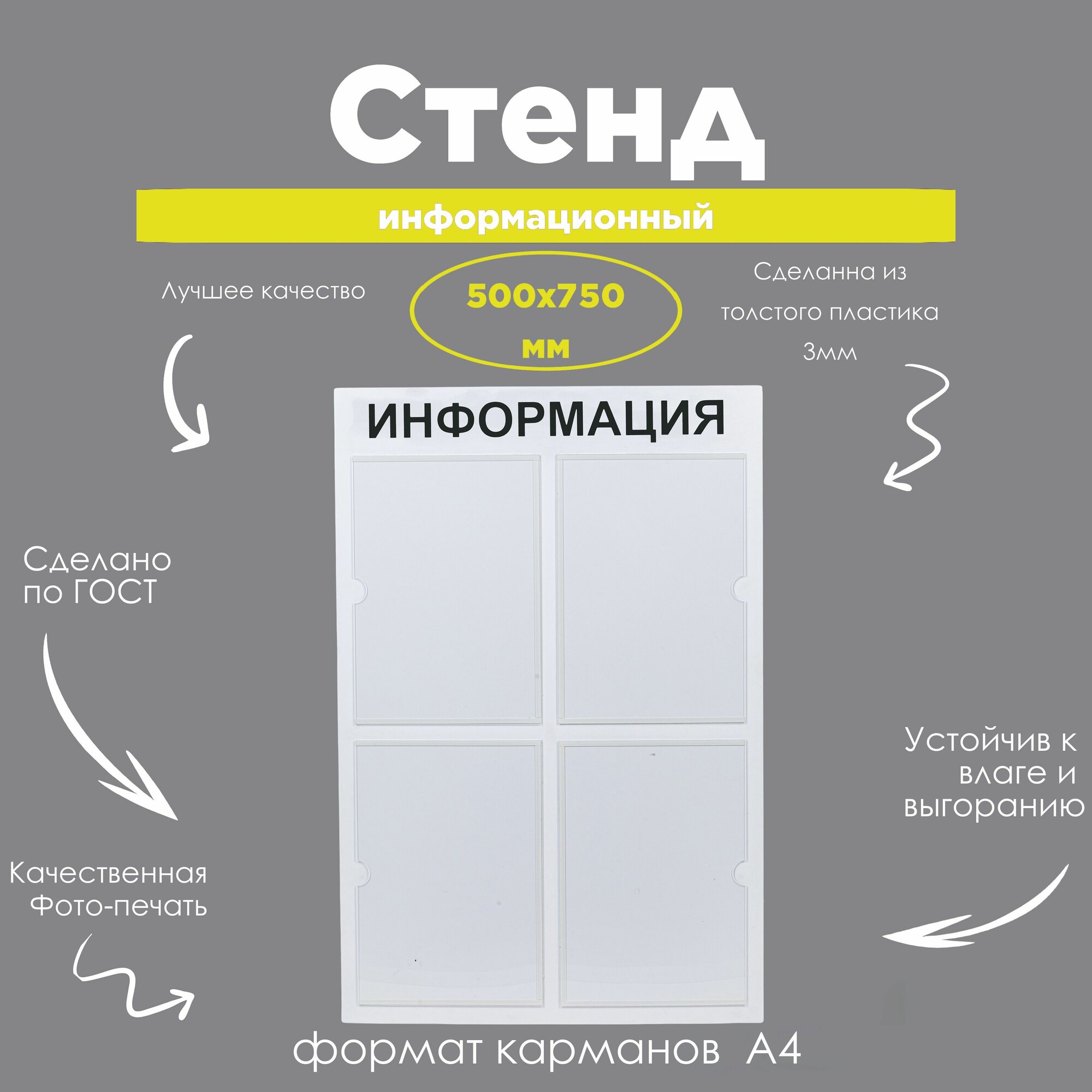 Купить Стенд информационный 4 карманов А4 500×750мм черный цвет с доставкой по всей России.