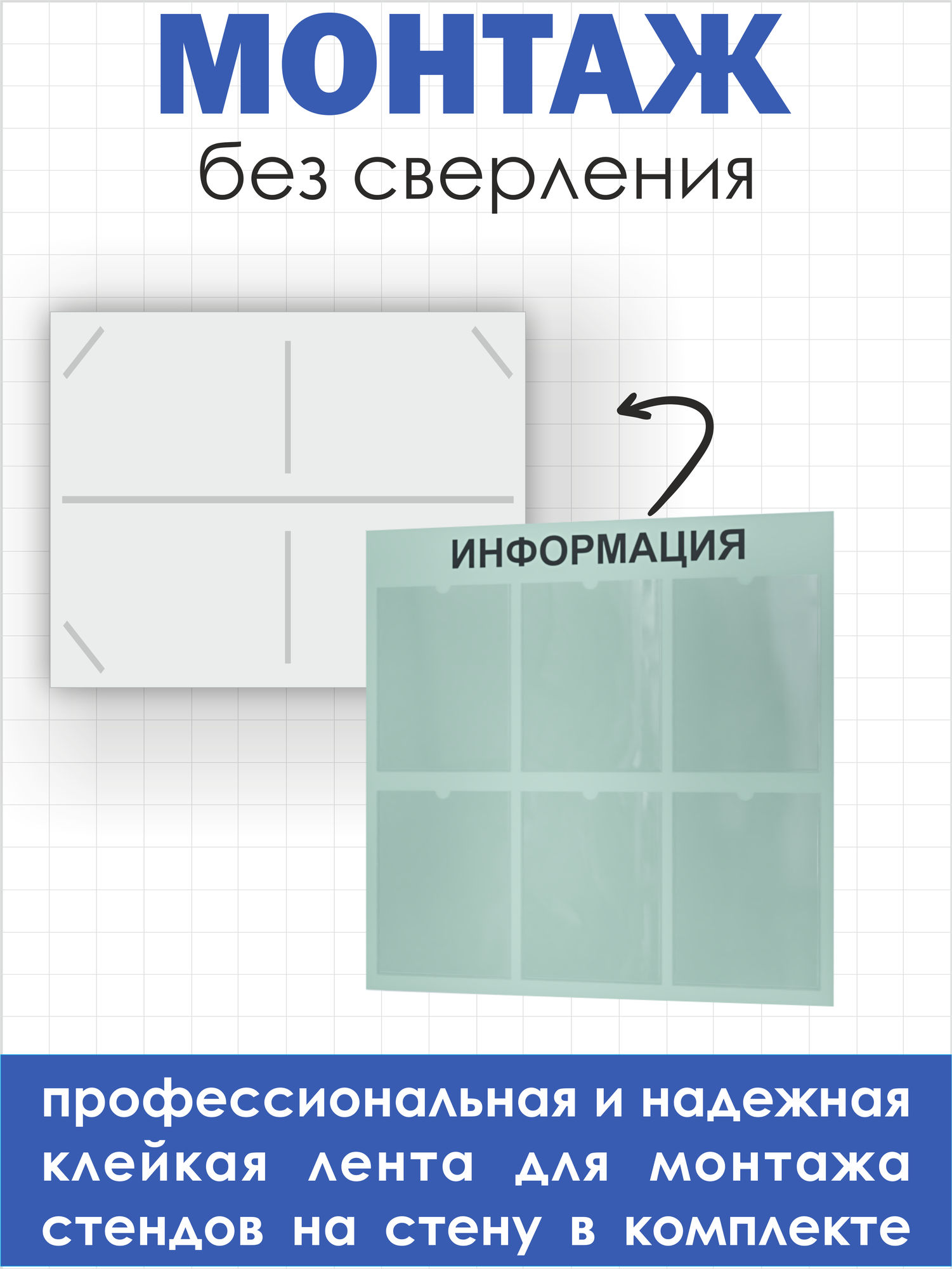 стенд информационный с двусторонним скотчем для монтажа с обратной стороны - 1 шт
