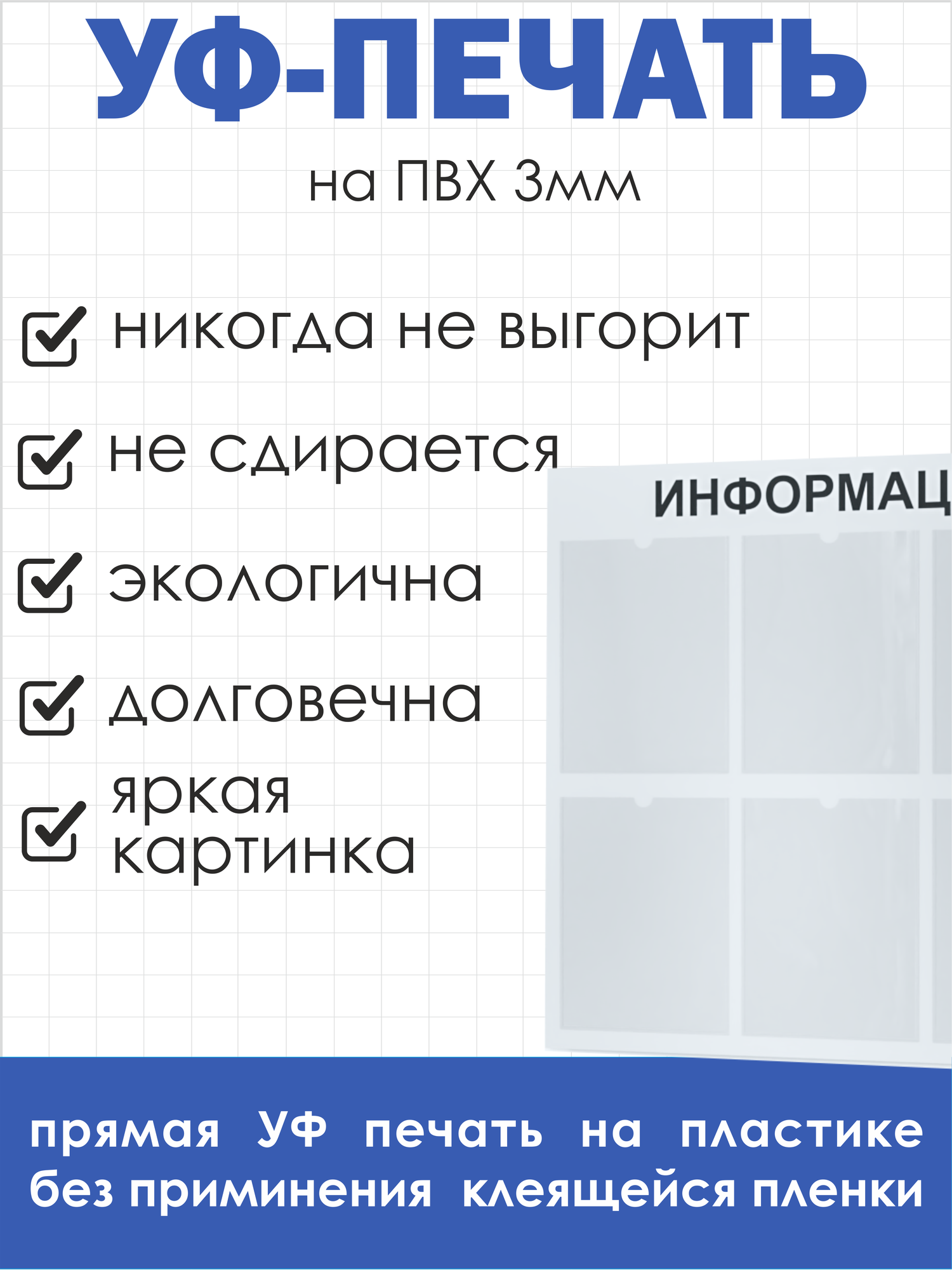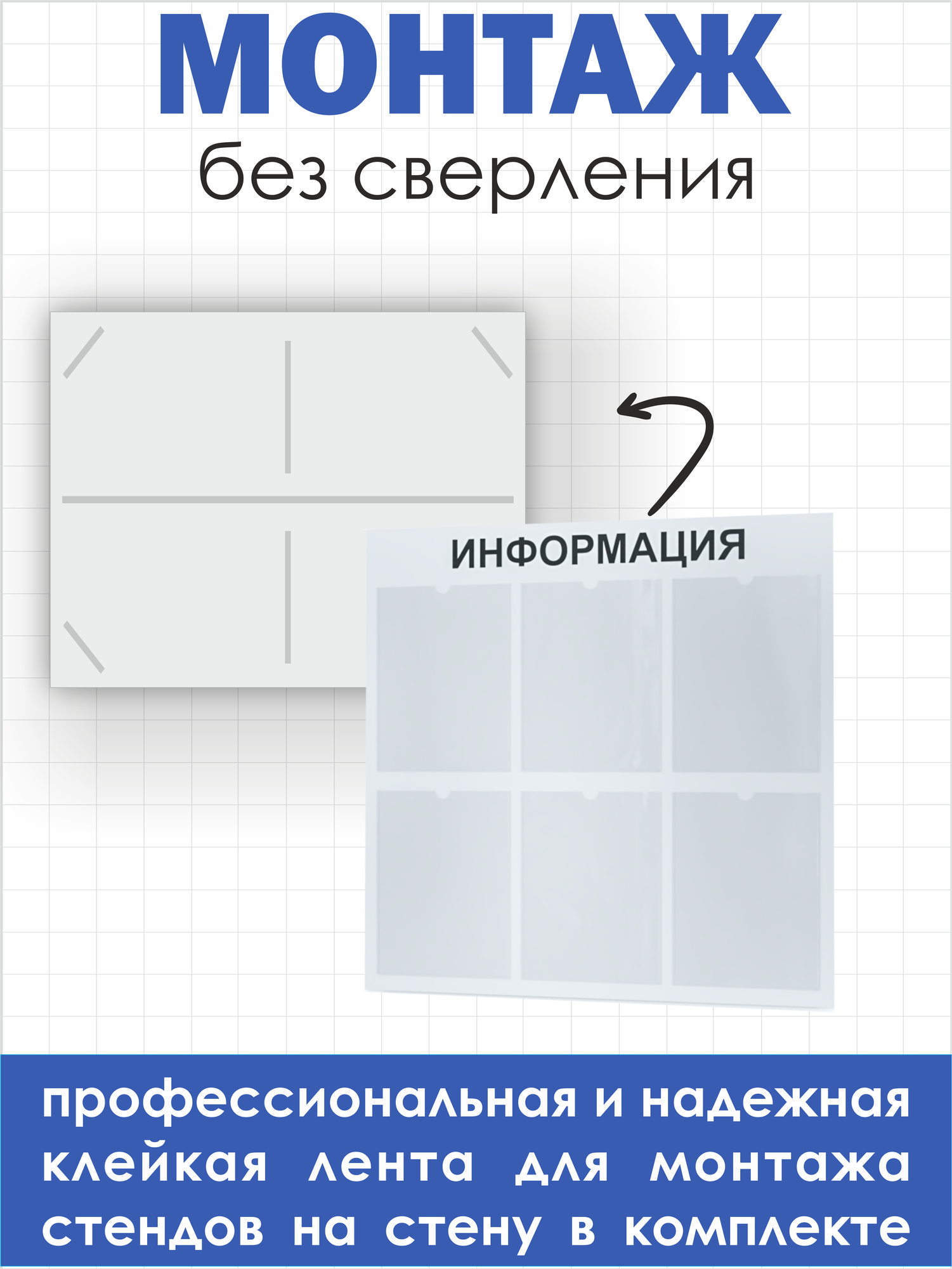 | Комплектация | стенд информационный с двусторонним скотчем для монтажа с обратной стороны - 1 шт |