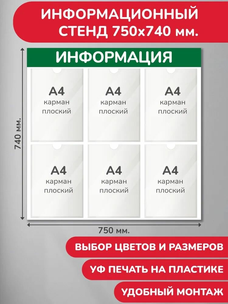 Купить Стенд информационный зелёный, 750х740 мм, 6 карманов А4 (доска информационная, уголок покупателя) с доставкой по всей России. Стенд информационный зелёный, 750х740 мм, 6 карманов А4 (доска информационная, уголок покупателя): сравнение цен, характеристики, фото, актуальное наличие и цены.