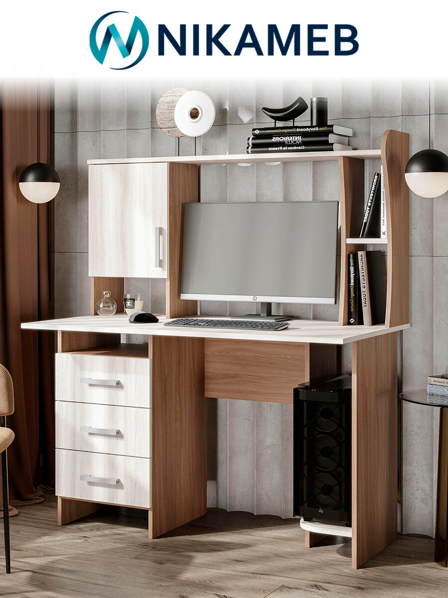 Стол компьютерный письменный с ящиками и надстройкой это удобное и функциональное рабочее место для студента школьника подростка и отличное решение для кабинета офиса спальни или гостиной. Наш стол идеально подойдет для удаленной работы дома. Стол хорошо сочетается с интерьером в современном скандинавском, классическом или современном стиле, в стиле лофт, минимализм или модерн. Стол прекрасно дополнит уголок школьника подойдет для учебы работы хобби и рукоделия.