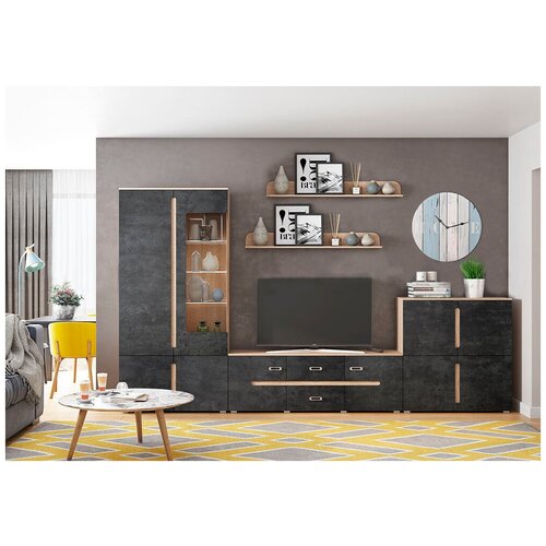 Купить Стенка Нонтон Ким №1 бетон графит / дуб сонома 360х42.4х206 см с доставкой по всей России. Стенка Нонтон Ким №1 бетон графит / дуб сонома 360х42.4х206 см: сравнение цен, характеристики, фото, актуальное наличие и цены.
