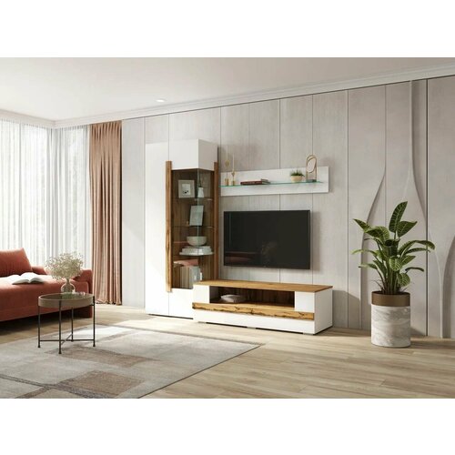 Шкаф-витрина - это еще один элемент этой стенки, который позволит вам демонстрировать свои ценные вещи в безопасном месте. Этот шкаф имеет нажимной механизм, что делает его очень удобным в использовании.