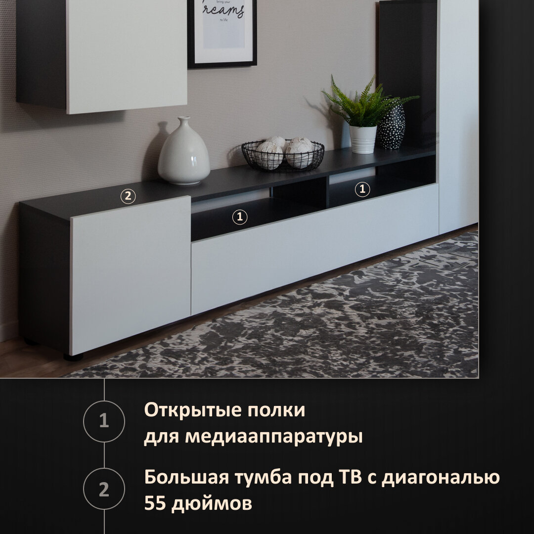 | Подробная комплектация | Полка;Тумба под ТВ;Шкаф-пенал |