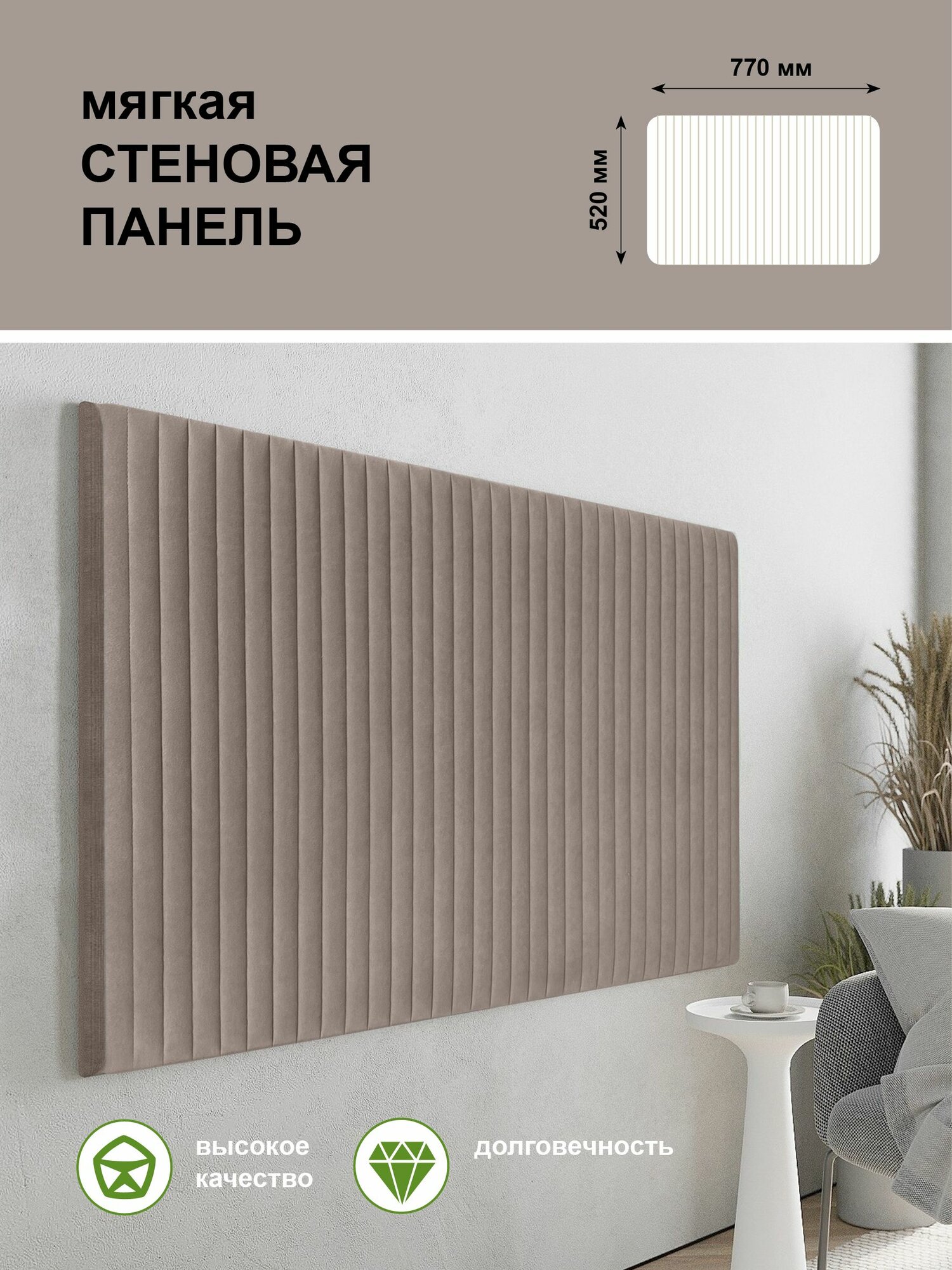 Стеновая панель мягкая для прихожей, спальни, гостиной, изголовье кровати, цвет какао 52х77 см Сон-Сервис: сравнение цен, характеристики, фото, актуальное наличие и цены.