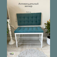 Мягкая стеновая панель (изголовье) для пуфика (длина 75 с половиной высота 38 глубина 5.6 см) основа изделия ДСП 16 мм, укрыта поролоном 40 мм и обтянута велюром серии антивандальный. Спинка для пуфа с обратной стороны имеет навесы для крепежа к стене и может быть установлена как в горизонтальном положении, так и в вертикальном. Всё необходимое для установки панели на стену входит в комплектацию. Мягкая стеновая панель идеально подойдет для прихожей к нашим изделиям из серии антивандальный велюр: к банкеткам - обувницам Сканди и к пуфику с ящиком для хранения серии 800-Я и 400-Я.