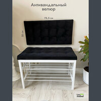 Мягкая стеновая панель (изголовье) для пуфика (длина 75 с половиной высота 38 глубина 5.6 см) основа изделия ДСП 16 мм, укрыта поролоном 40 мм и обтянута велюром серии антивандальный. Спинка для пуфа с обратной стороны имеет навесы для крепежа к стене и может быть установлена как в горизонтальном положении, так и в вертикальном. Всё необходимое для установки панели на стену входит в комплектацию. Мягкая стеновая панель идеально подойдет для прихожей к нашим изделиям из серии антивандальный велюр: к банкеткам - обувницам Сканди и к пуфику с ящиком для хранения серии 800-Я и 400-Я.