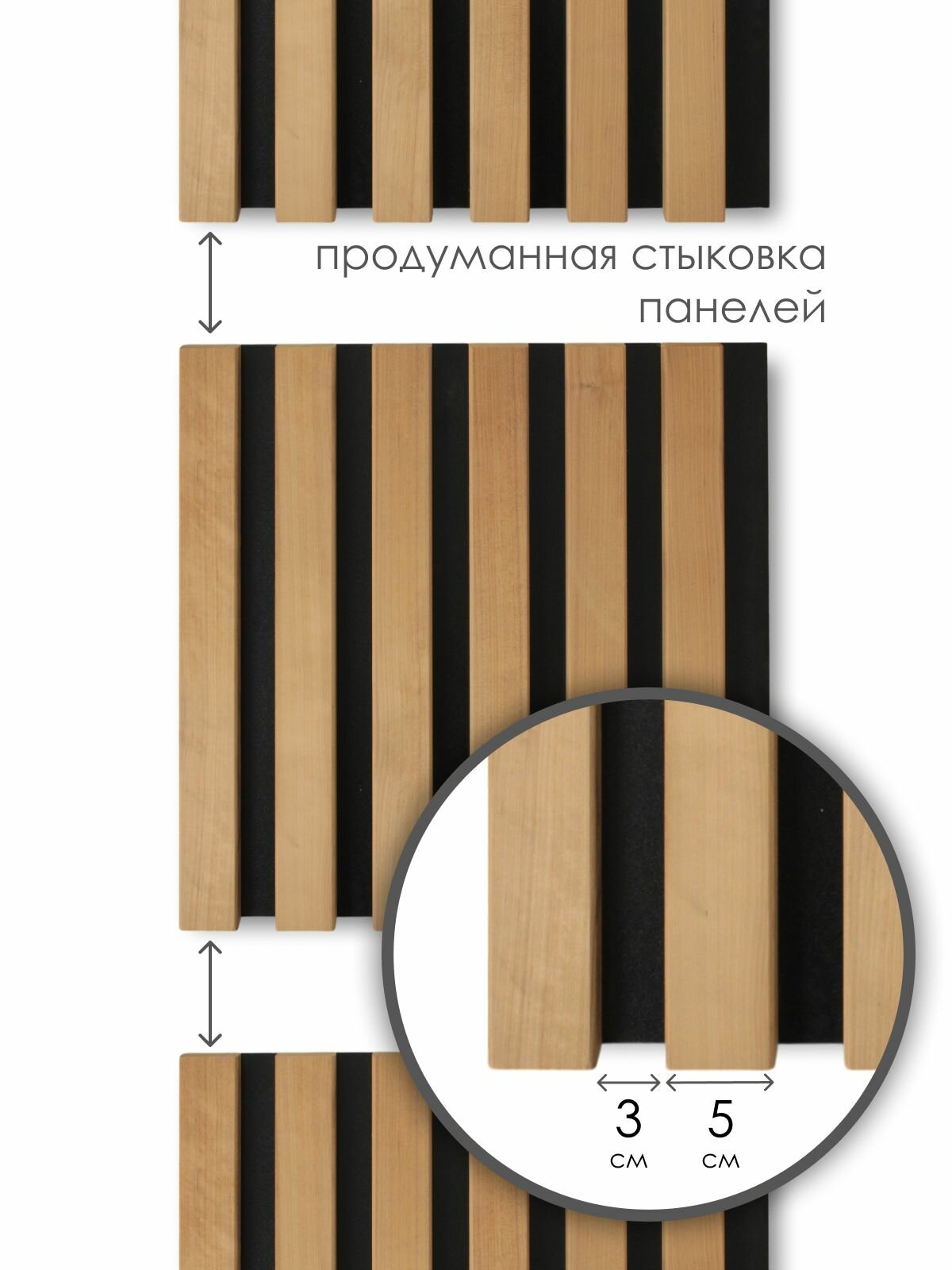 Стеновые панели реечные из натурального массива березы на черном фоне, 500х495 мм, 4 шт.