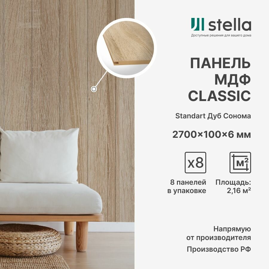 Стеновые панели МДФ Classic Standart для гостиной, прихожей, спальни, детской, кабинета, кухни; Цвет: Дуб Сонома 2700х200х6 мм (упаковка 8 штук): сравнение цен, характеристики, фото, актуальное наличие и цены.