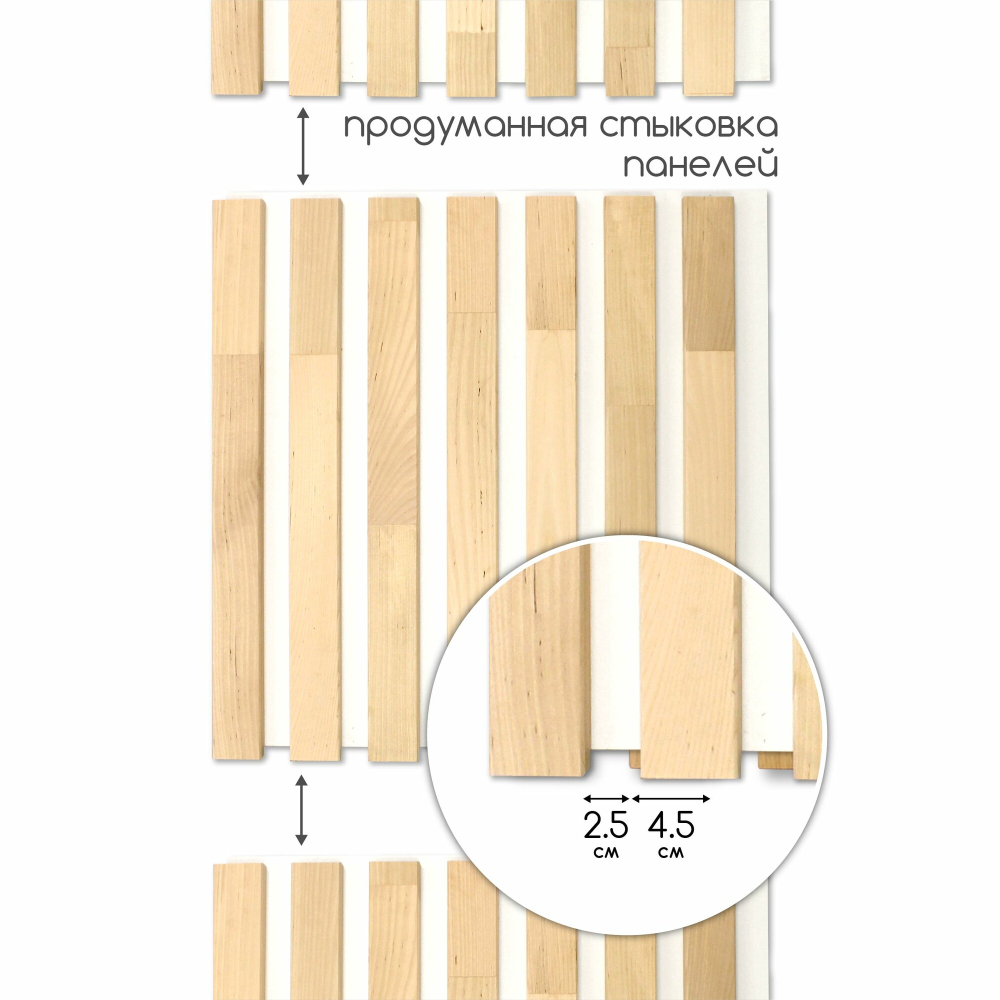 Реечные стеновые панели идеально подойдут для создания стильного интерьера различных помещении. С их помощью вы сможете создать уникальный интерьер, который подчеркнет ваш индивидуальный стиль. Панели для стен имеют уникальный 3d эффект, который придает вашему интерьеру глубину и объем. Панели представляют собой модульную систему, которая легко монтируется на стены с помощью жидких гвоздей или клея на полимерной основе. Декоративные настенные панели изготовлены из натуральных материалов. Каждая настенная панель состоит из прочной ХДФ подложки она экологична, безопасна и имеет хорошие звукоизоляционные свойства из-за плотной и однородной структуры (размер подложки 500x490 мм, толщина 3 мм), на подложку закреплены 7 реек, выполненных из массива березы, толщиной 15 мм (размер стеновой панели 500х500 мм). Подложки крепятся «встык», образуя единое монолитное полотно. Перед монтажом деревянных панелей на стену необходимо очистить поверхность от пыли и грязи. Следует загрунтовать бетон, кирпич, штукатурку и наклеить реечные панели. Помимо декоративной функции, панели на стену также обладают звукоизоляционными свойствами, что делает их отличным выбором для облицовки стен в спальне, для кухни, прихожей или в детской комнате. Декоративные настенные панели успешно перекрывают недочеты ремонта – небольшие трещины и неровности стен. Благодаря использованию натуральных материалов, наши рейки декоративные на стену безопасны для здоровья. Преимущества панелей на стену: натуральный материал, экологичность, выгодно изменяют геометрию пространства, не требуют специального ухода, долговечность, легкий монтаж, возможность использования как в жилых, так и в офисных и общественных помещениях!