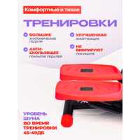 Тренажер оснащен счетчиком шагов на экране, который позволяет отслеживать прогресс тренировки и корректировать интенсивность занятий. Эспандеры, входящие в комплект, помогут не сбавлять темп интенсивности во время тренировки.