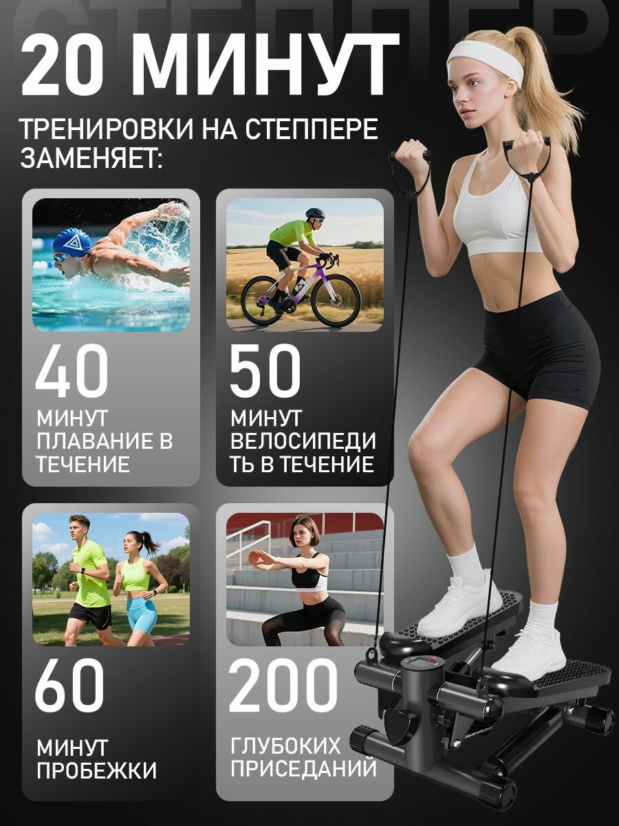 Купить Степпер с эспандерами тренажер для дома Мини тренажер для похудения, для ходьбы, для ног и ягодиц с доставкой по всей России.
