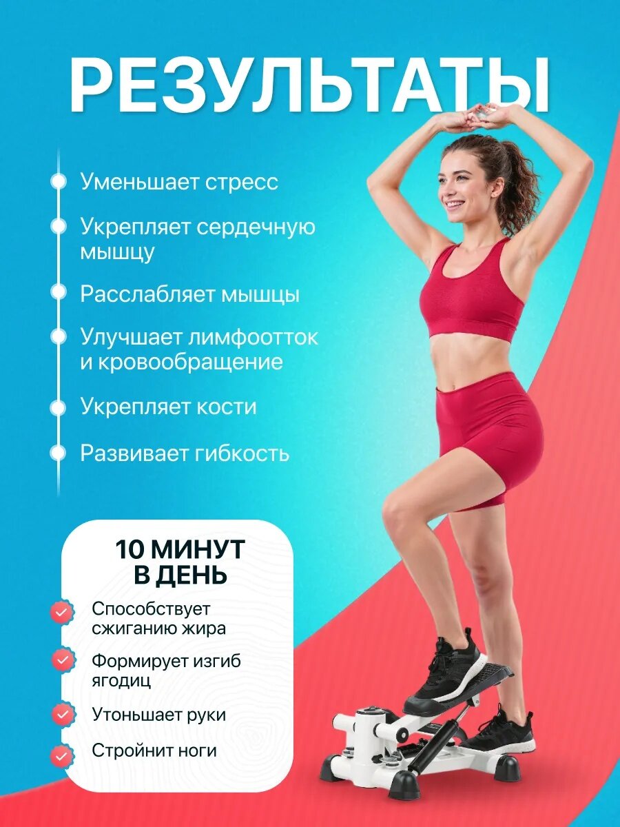 Купить Степпер с эспандерами тренажер для дома Мини тренажер для похудения, для ходьбы, для ног и ягодиц с доставкой по всей России.