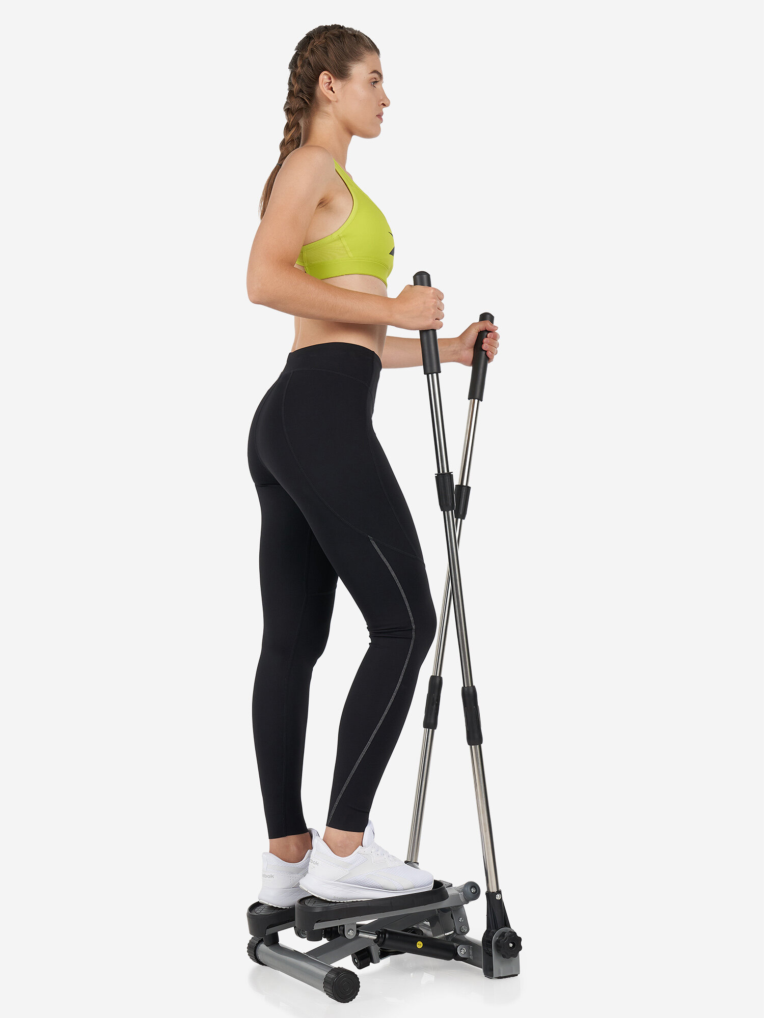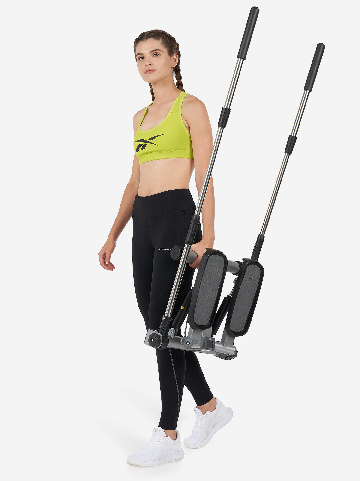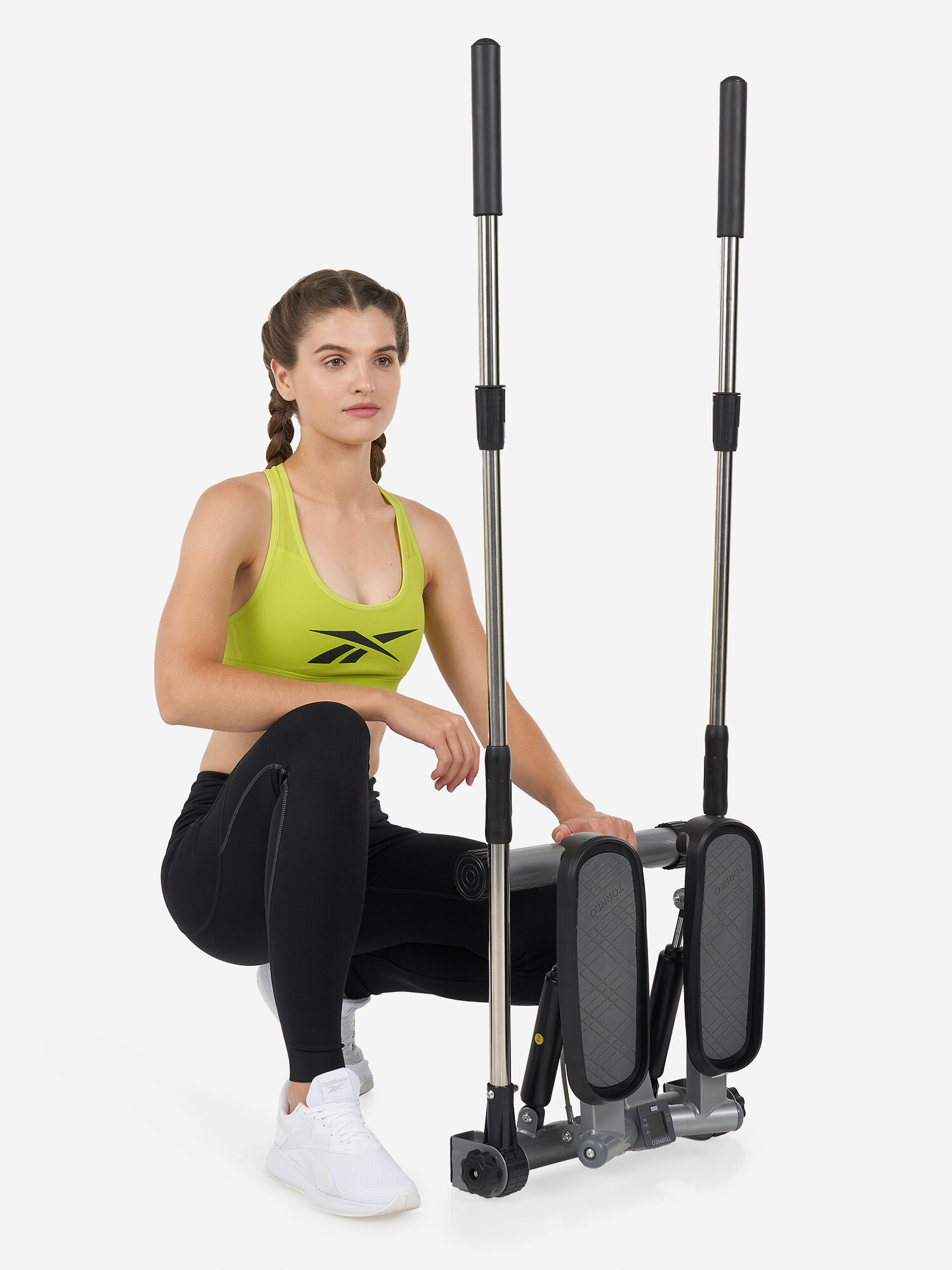 Степпер Torneo — отличный выбор для тех, кто хочет укрепить мышцы бедра, икроножные и ягодичные мышцы. Благодаря специальным палкам эффективность тренировки увеличивается в 1.5 раза по сравнению с обычной ходьбой. Максимальный вес пользователя 110 кг. Компьютер на степпере показывает время тренировки, количество шагов, ритм, израсходованные калории и общую дистанцию. Вы можете менять нагрузку, регулируя амплитуду и высоту хода педалей.