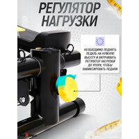Тренажер оснащен счетчиком шагов на экране, который позволяет отслеживать прогресс тренировки и корректировать интенсивность занятий. Эспандеры, входящие в комплект, помогут не сбавлять темп интенсивности во время тренировки.