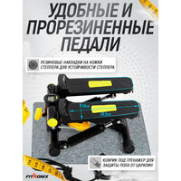 "- Коврик под тренажер - Эспандеры для рук - Антискользящее покрытие для ног - Плавная регулировка высоты шага; - Резиновые накладки на ножки степпера, для защиты пола - Счетчик шагов"