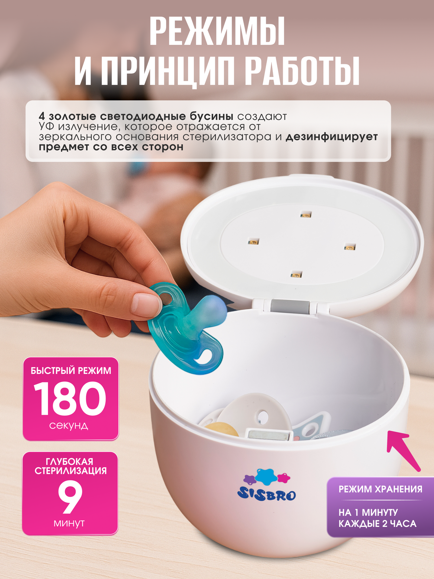 Купить Стерилизатор для сосок SISBRO, ультрафиолетовый, контейнер для пустышек с доставкой по всей России.
