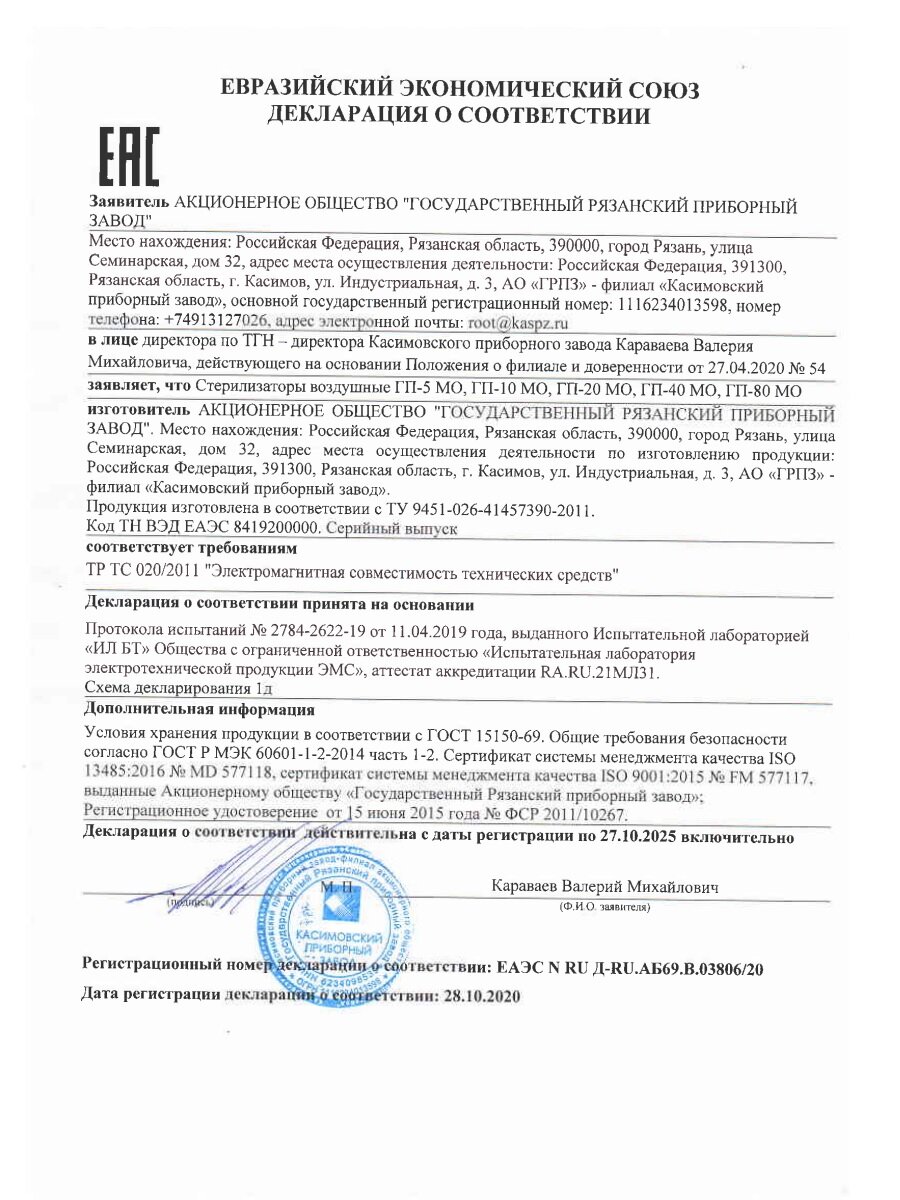 Стерилизатор воздушный - 1 шт.; полки - 2 шт.; руководство по эксплуатации; регистрационное удостоверение; декларация о соответствии