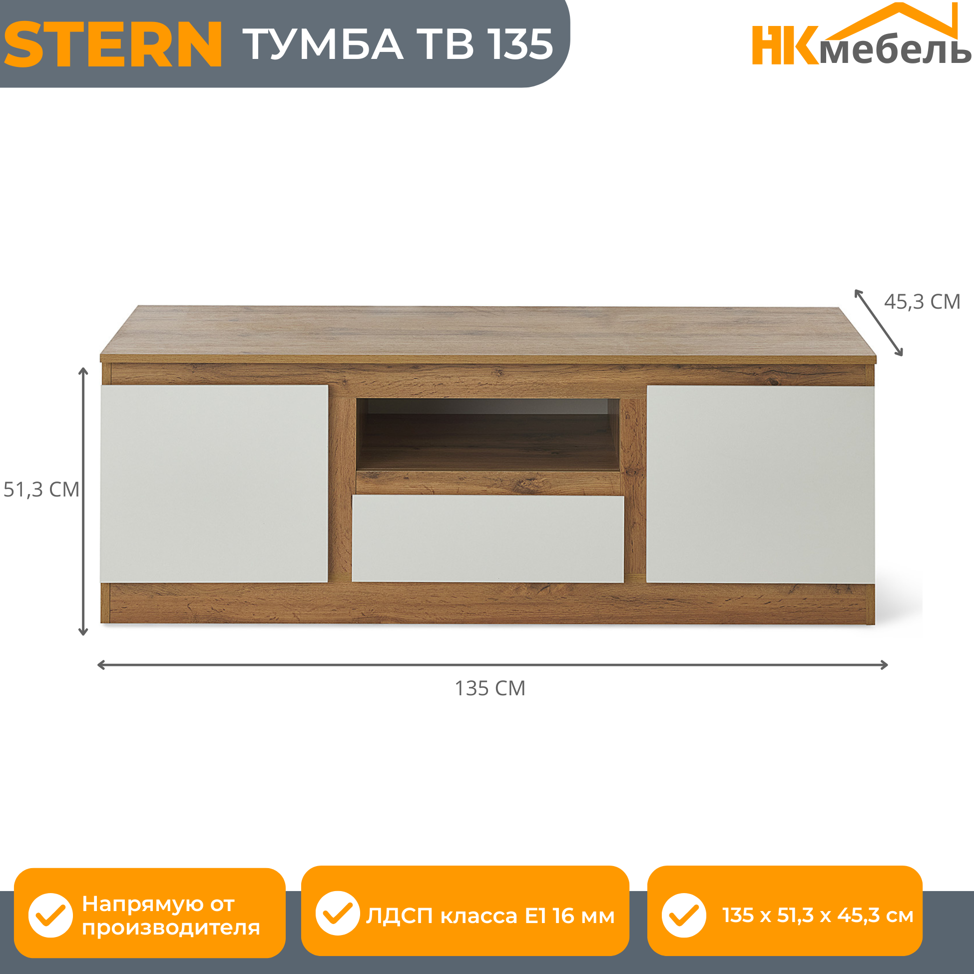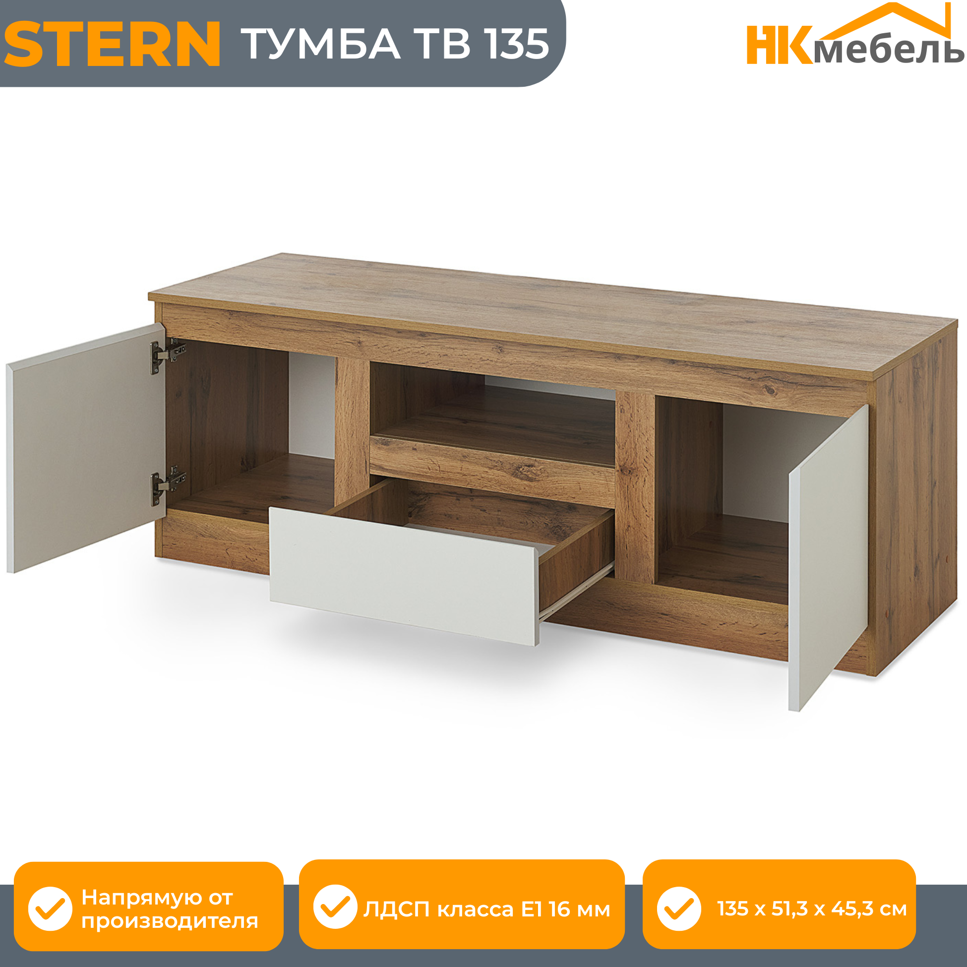 Купить STERN ТВ-135 Тумба под ТВ, Дуб Вотан/Белый, 135х51х45 см с доставкой по всей России. STERN ТВ-135 Тумба под ТВ, Дуб Вотан/Белый, 135х51х45 см: сравнение цен, характеристики, фото, актуальное наличие и цены.