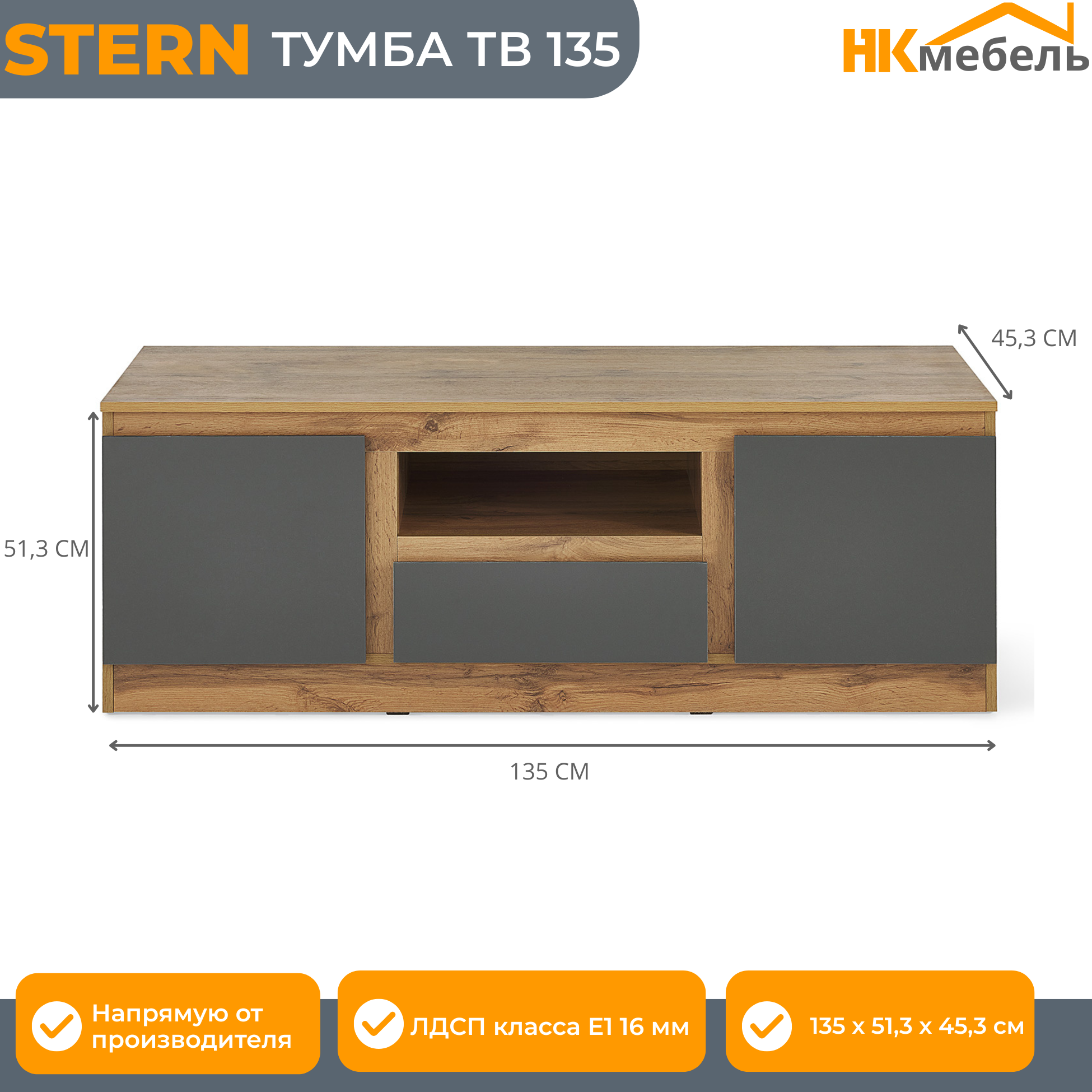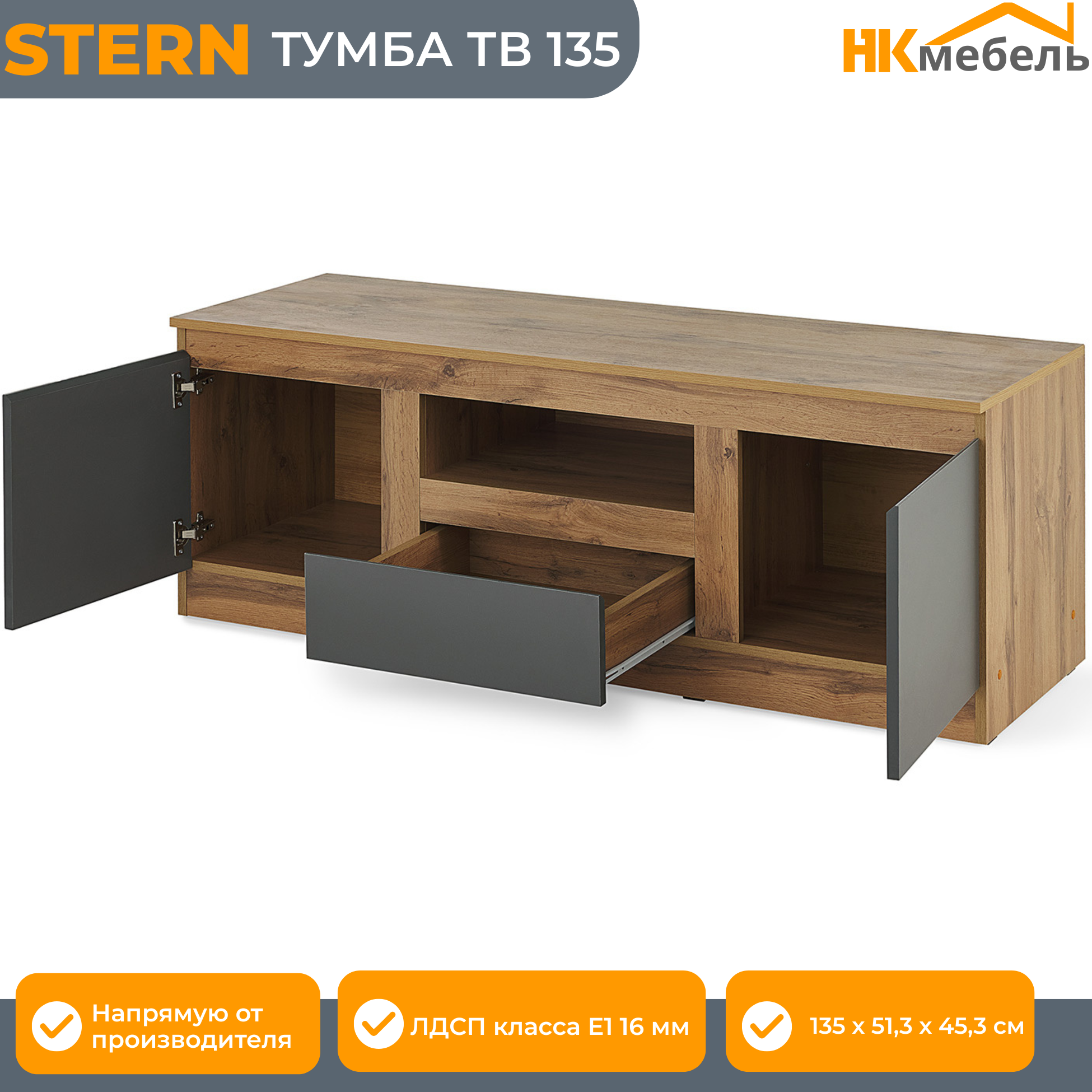 Купить STERN ТВ-135 Тумба под ТВ, Дуб Вотан/Графит, 135х51х45 см с доставкой по всей России. STERN ТВ-135 Тумба под ТВ, Дуб Вотан/Графит, 135х51х45 см: сравнение цен, характеристики, фото, актуальное наличие и цены.