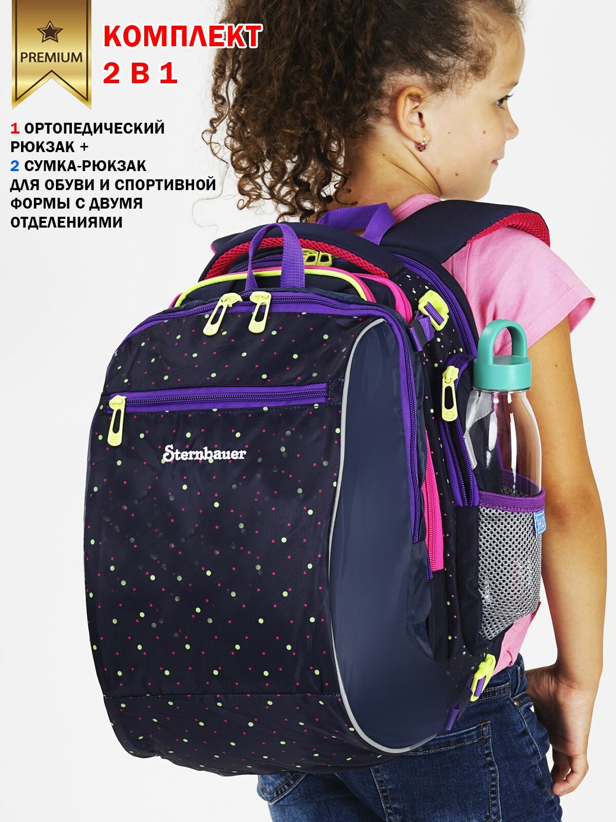 STERNBAUER Рюкзак школьный для девочек + мешок для обуви с ярким принтом детский/ Ранец анатомический для начальных младших средних классов/ Портфель с ортопедической спинкой первокласснице в 1 класс: сравнение цен, характеристики, фото, актуальное наличие и цены.