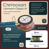 Стетоскоп медицинский Littmann Classic III Морская волна и радужный, двухсторонний: сравнение цен, характеристики, фото, актуальное наличие и цены.