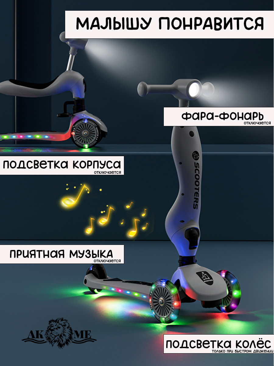 Купить Стильный и качественный самокат-трансформер трёхколесный 3в1 с доставкой по всей России.