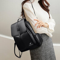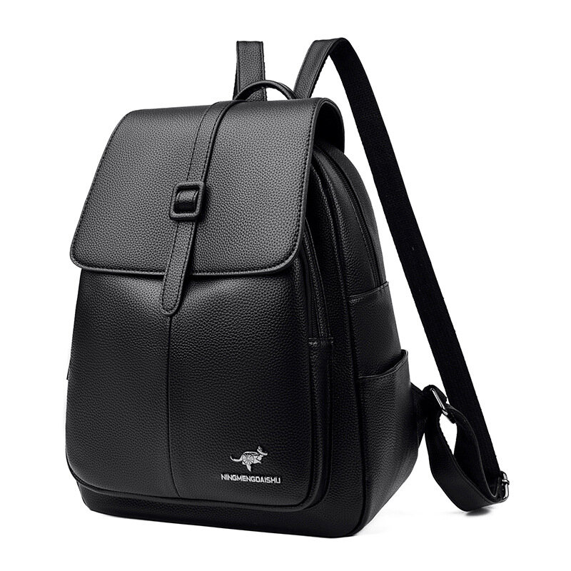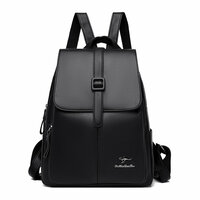 Стильный женский рюкзак в черном лаконичном стиле, изготовлен из материала Pu leather. PU кожа - это искусственный материал, созданный по особой технологии, обладает большей прочностью и износостойкостью. Фурнитура модели выполнена в цвете черный никель в стиль рюкзака. Состоит из двух отделов которые закрываются на молнию и прикрываются крышкой клапаном на кнопке магните. По бокам карманы для зонта и т. п. На спинке карман антивор на молнии. Размер: 30х26х12 см.