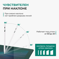 Сверхчувствительный стилус для iPad планшетов с быстрой зарядкой отличное решение для письма от руки, заметок, и рисования с изменением толщины линии от угла наклона. Стилус имеет матовую поверхность. Ручка для планшета комплектуется дополнительным сменным наконечником.