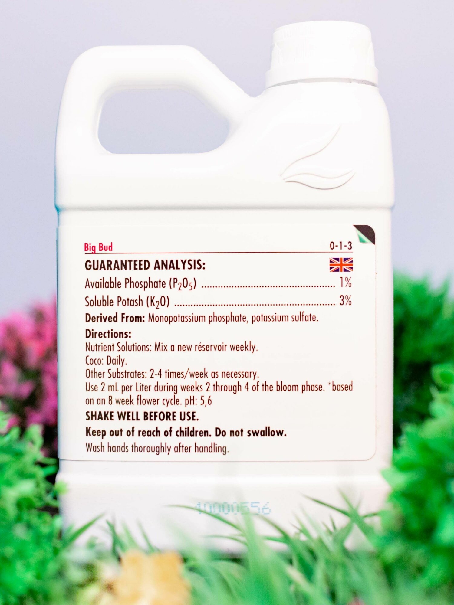 Big Bud Liquid– один из лучших стимуляторов цветения, содержащий вещества, повышающие урожайность и качество готового продукта. Разработанный в соответствии со строжайшими стандартами качества Advanced Nutrients, этот бустер содержит дополнительный фосфор и калий, а также L-аминокислоты для пышного, обильного цветения. Большинство усилителей цветения содержит калий и фосфор, но в Big Bud Liquid есть много других ингредиентов, повышающих не только количество, но и качество цветов. Аминокислоты ускоряют всасываемость питательных веществ и увеличивают цветение. Магний нейтрализует токсичность калия, улучшает текстуру и вкус; аскорбиновая и лимонная кислоты напитывают растение кислородом. Big Bud Liquid работает на начальных и средних стадиях цветения, значительно увеличивая количество цветков. Ближе к концу цветения рекомендуем перейти на бустер Overdrive от Advanced Nutrients, чтобы урожай подоспел быстрее. Эту добавку можно использовать совместно с удобрениями и бустерами от Advanced Nutrients, особенно Sensi Bloom и Connoisseur из линейки pH Perfect. Применение: Big Bud следует использовать как усилитель цветения и стимулятор в качестве добавки к базовому удобрению вашей гидропонической системы (в идеале – Sensi Bloom или Connoisseur) со второй недели цветения; прекратить использовать за три недели до сбора урожая. Наполните резервуар вашей системы свежей водой, добавьте ваше базовое удобрение, тщательно перемешайте; затем по одному добавляйте необходимые усилители, каждый раз перемешивая раствор. Big Bud нужно добавлять из расчета 2мл на литр раствора или жидкости для полива. Если вы используете удобрения не из серии pH Perfect или добавки от других производителей, не забудьте проверить кислотно-щелочной баланс. Соотношение содержания азота, фосфора и калия: 0:1:3. Внимание: Никогда не смешивайте удобрения, добавки и бустеры в концентрированной форме (то есть, прямо из бутылок). Всегда добавляйте их в резервуар или воду для полива по отдельности и тщательно смешивайте перед добавлением следующего вещества.