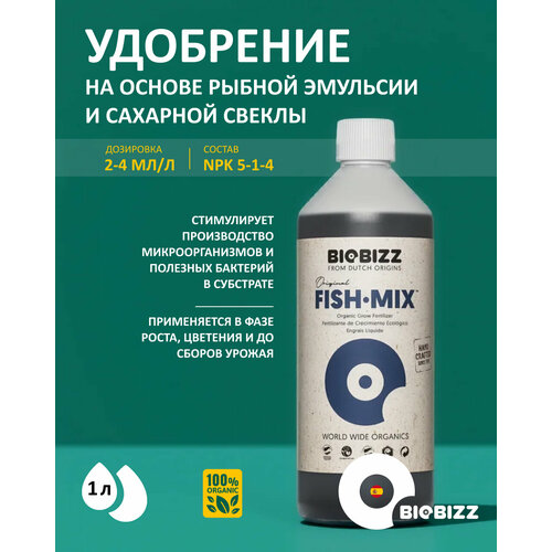 Стимулятор роста и биофлоры BioBizz Fish Mix 1 л: сравнение цен, характеристики, фото, актуальное наличие и цены.