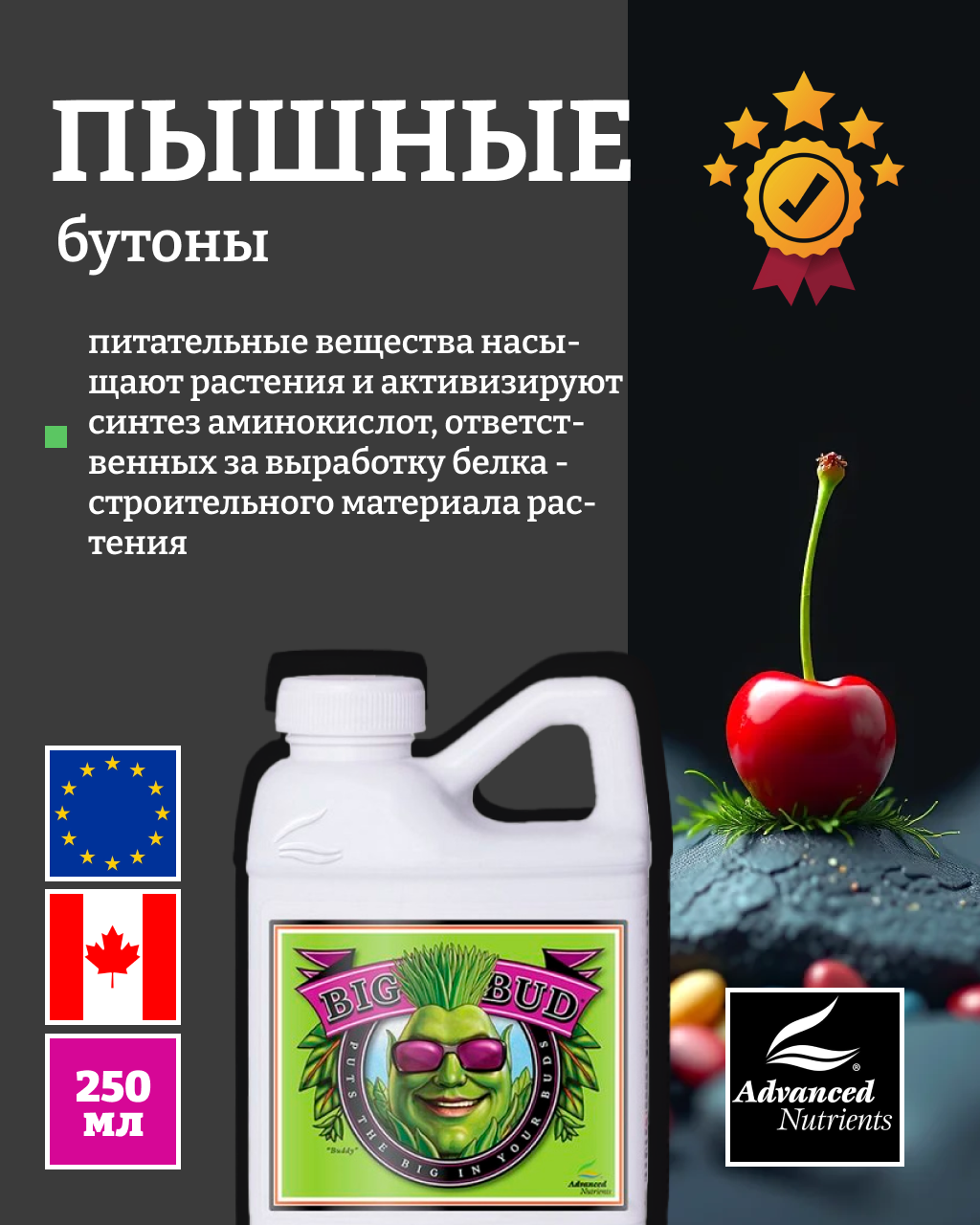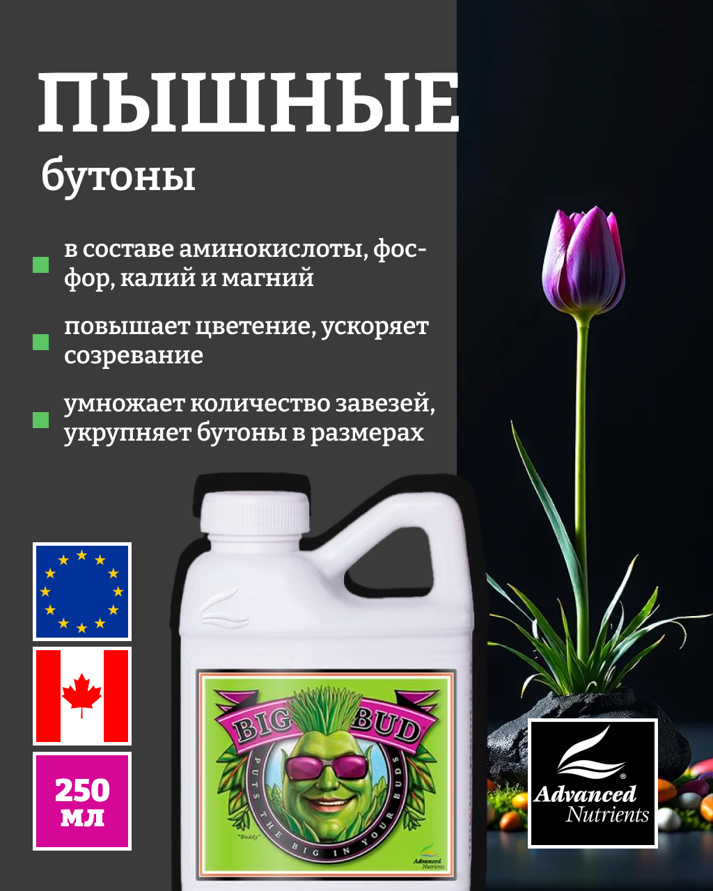 Купить Удобрение — стимулятор урожайности Advanced Nutrients Big Bud Liquid 0.25 л. с доставкой по всей России. Удобрение — стимулятор урожайности Advanced Nutrients Big Bud Liquid 0.25 л.: сравнение цен, характеристики, фото, актуальное наличие и цены.