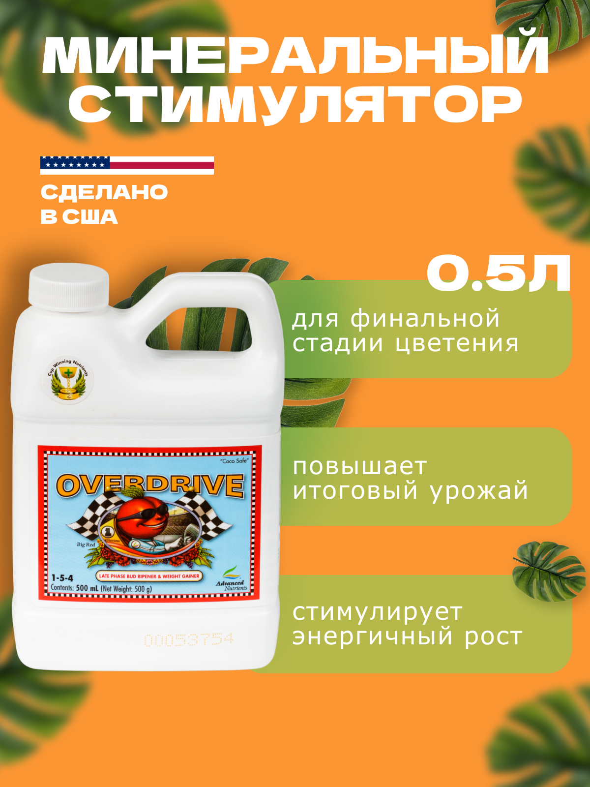 Улучшает Вкус и Аромат: Смесь фосфора, калия и других важных питательных веществ, содержащаяся в Overdrive, способствует усиленной выработке сахаров и масел в бутонах. Это улучшает их вкус и аромат, делая урожай более привлекательным и вкусным.