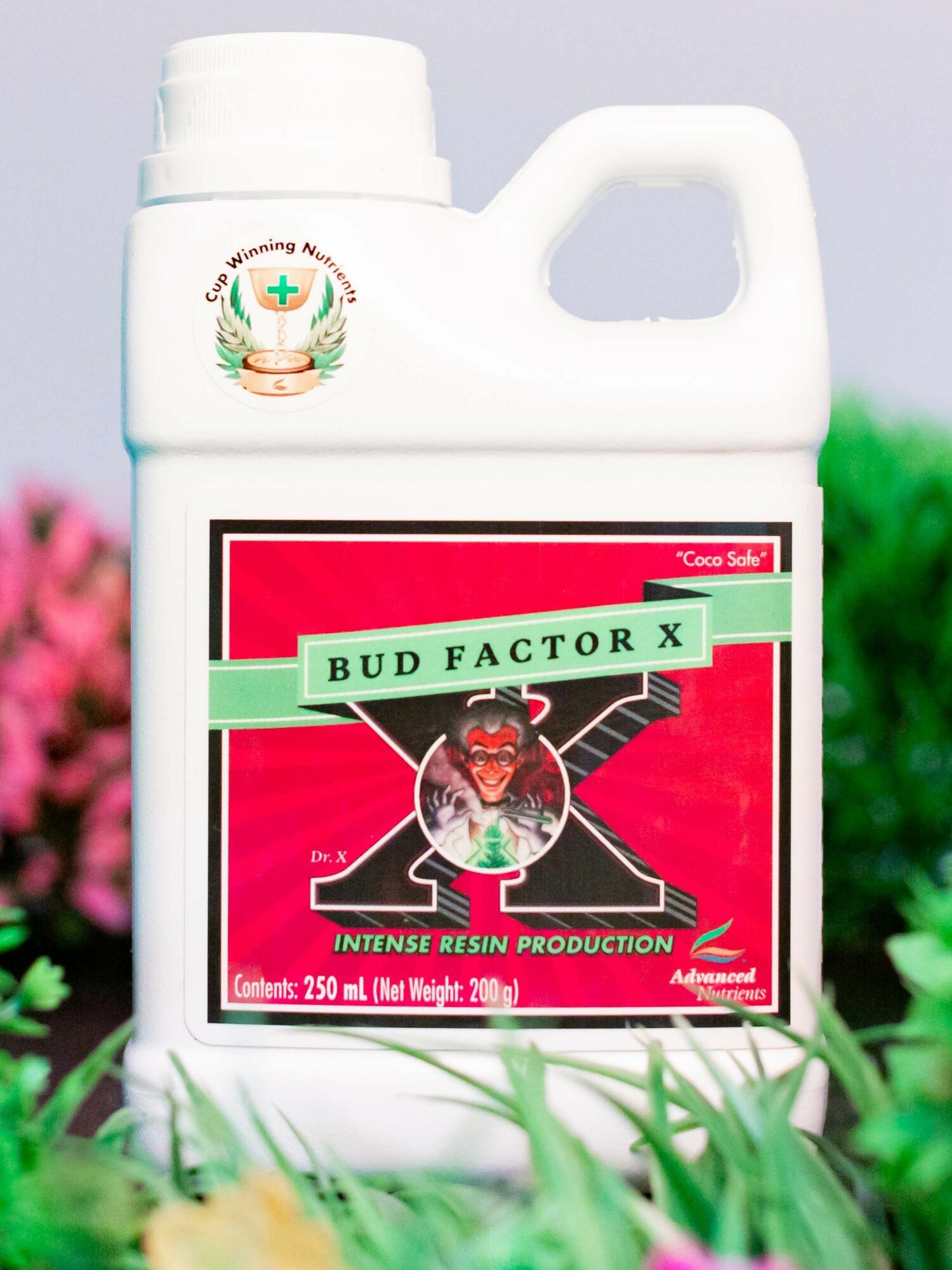 Bud Factor X — стимулятор, позволяющий достичь наивысшего качества и максимальный объем урожая. Содержание эфирных масел является одним из факторов качественности урожая. Вкусовые качества, аромат, содержание смол — зависят от выработки растениями эфирных масел в последние недели цветения. Кроме того, смолы и эфирные масла являются естественным фактором защиты растения от насекомых (например, паутинного клеща, способного погубить весь урожай).