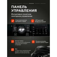 | Программы | быстрая стирка, отжим, ручная стирка, стирка верхней одежды, стирка деликатных тканей, стирка пуховых вещей, стирка синтетики, стирка смешанных тканей, стирка спортивной одежды, стирка хлопка, экономичная программа, Полоскание + отжим |
